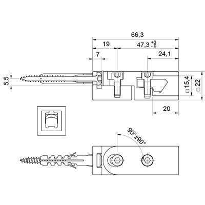 P&S Wandanschluss, eckig, beweglich, für Stabistangen 15x15 mm