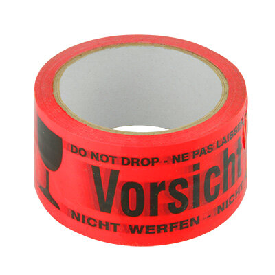 PP-Klebeband, 50 mm x 66 m, rot, Vorsicht Glas