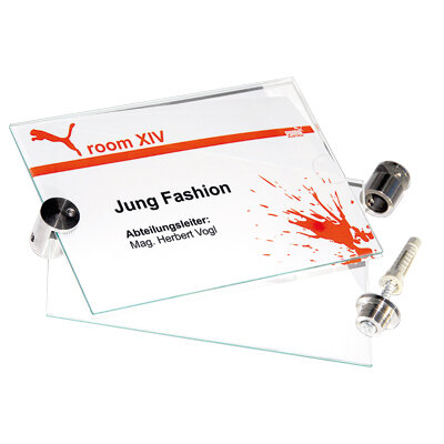 Montagefertige ESG - Schilder 2 x 3 mm ohne Bohrung.